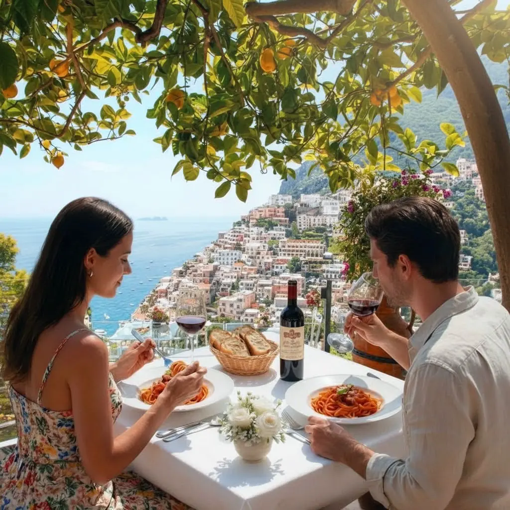 A table for two among lemon trees, with Positano at your feet and the sea painting the horizon.